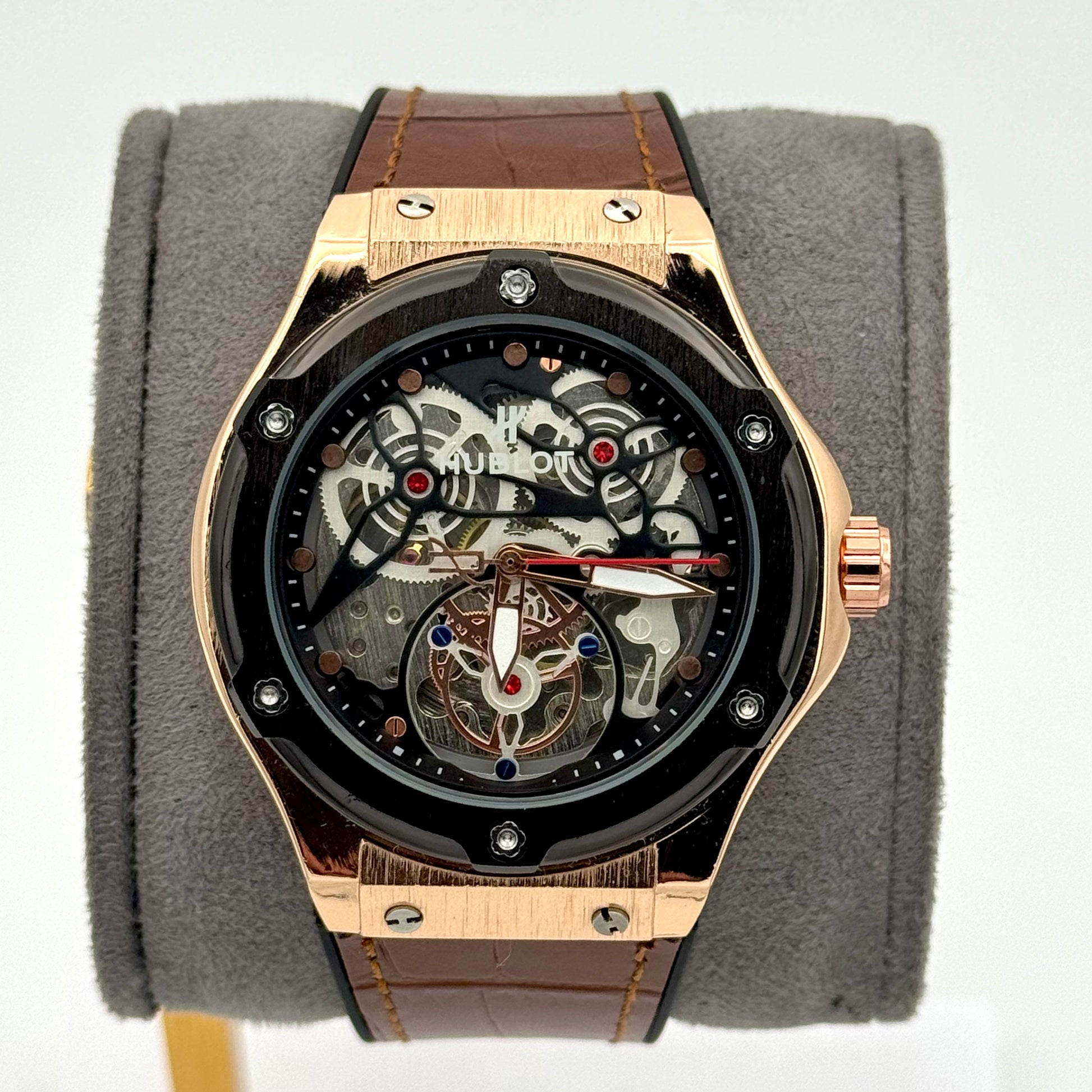 Finition miroir avec vis apparentes dans le style signature Hublot