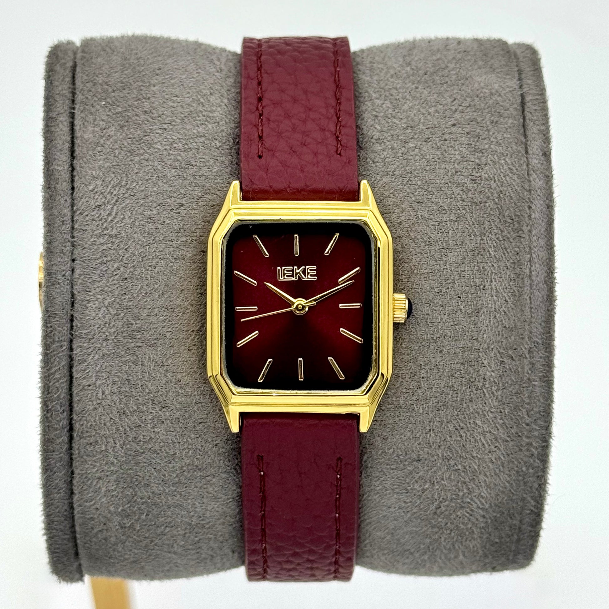 Élégante et raffinée, cette montre IEKE bordeaux et or apporte une touche de luxe discret à chaque tenue.Son cadran carré minimaliste et son bracelet en cuir bordeaux offrent un style féminin